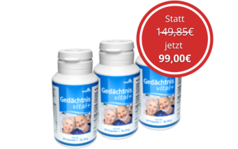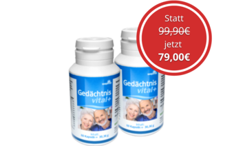 Wenn Sie diese Seite verlassen und später wiederkommen, kann ich Ihnen nicht versprechen, dass dieser 20-Euro-Rabatt noch verfügbar sein wird. Deshalb fordern Sie jetzt gleich Ihre Testkur von Gedächtnis vital+ an.